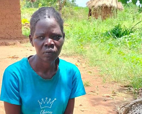 Agnes’s husband forced her and their 3 children out of their home due to her constant leaking. Her father’s relatives also rejected her. She fled to the Ogolai trading center where a good Samaritan provided a thatched roof hut for them to live in.